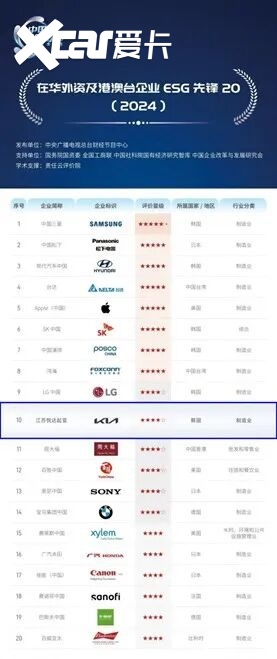 此外,江苏悦达起亚还连续2年入围中央广播电视总台“在华外资及港澳台企业ESG先锋”榜单前10,是榜单前10中唯一在华外资子公司企业。