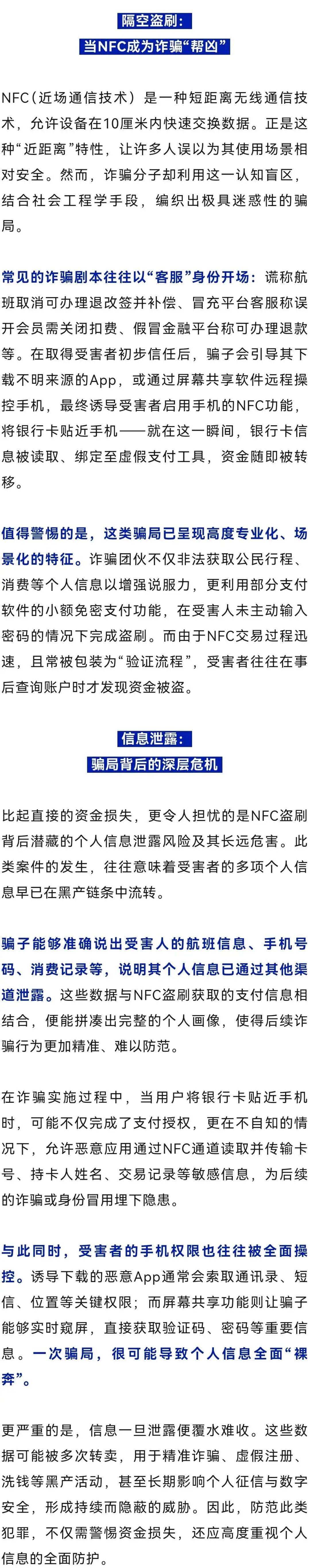 然而,当技术赋予生活便捷的同时,也悄然打开了风险之门。多地出现利用NFC功能,实施诈骗的新型犯罪手法,不少用户在毫无防备的情况下,银行卡内资金被隔空盗刷,个人信息亦遭泄露。