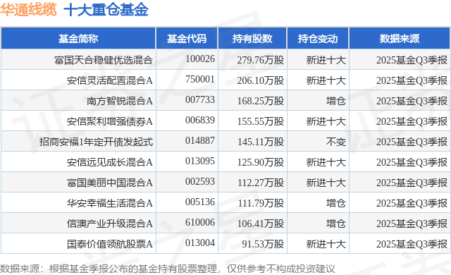 根据2025基金Q3季报公募基金重仓股数据,重仓该股的公募基金共38家,其中持有数量最多的公募基金为富国基金的富国天合稳健优选混合。富国天合稳健优选混合目前规模为24.64亿元,最新净值1.7646(1月12日),较上一交易日下跌0.18%,近一年上涨30.59%。该公募基金现任基金经理为张啸伟。张啸伟在任的基金产品包括:富国美丽中国混合A,管理时间为2016年5月19日至今,期间收益率为189.32%;富国睿泽回报混合,管理时间为2019年6月5日至今,期间收益率为132.06%。