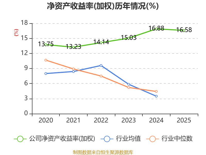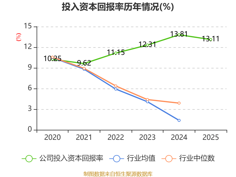 数据显示,2025年公司加权平均净资产收益率为16.58%,较上年同期下降0.3个百分点。公司2025年投入资本回报率为13.11%,较上年同期下降0.7个百分点。