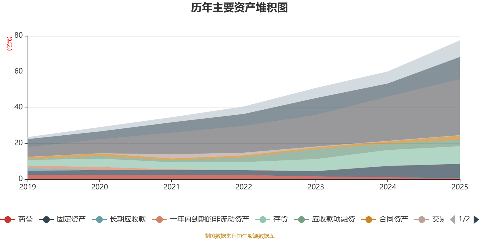 资产重大变化方面,截至2025年末,公司货币资金较上年末增加69.84%,占公司总资产比重上升3.86个百分点;存货较上年末增加11.2%,占公司总资产比重下降2.01个百分点;应收款项融资较上年末增加2.19%,占公司总资产比重下降1.2个百分点;商誉较上年末减少46.07%,占公司总资产比重下降1.07个百分点。